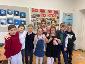 Nasi młodzi artyści zaprezentowali spektakl pt. „Cud jednej nocy”, przygotowany pod kierunkiem pani Agnieszki Łukaszewicz. Przedstawienie zachwyciło zarówno widzów, jak i jury swoją dojrzałością, emocjonalnością oraz głębokim, pouczającym przesłaniem. Opowieść o przemianie serca i niezwykłej nocy, podczas której przeszłość, teraźniejszość i przyszłość spotykają się na jednej scenie, skłoniła do refleksji i na długo zapadła w pamięć odbiorców.